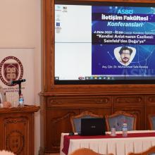 Konferans programı, Rektör V. Prof. Dr. Ali Osman Kurt ve ASBÜ İletişim Fakültesi Dekanı Prof. Dr. Mehmet Hilmi Demir’in açılış konuşmalarıyla başladı. Açılış konuşmaları sonrasında, Arş. Gör. Dr. Muhammed Safa Karataş “Kendini Anlatmanın Cazibesi: Seinfeld’den Doğu’ya” konu başlıklı konuşmasında, anlatının değişen yapısı hakkında değerlendirmelerde bulunarak, büyük anlatıların yerine yeni dönemde bireysel anlatıların ön plana çıktığını “Seinfeld” ve “Doğu” dizileri örnekleri üzerinden aktardı.